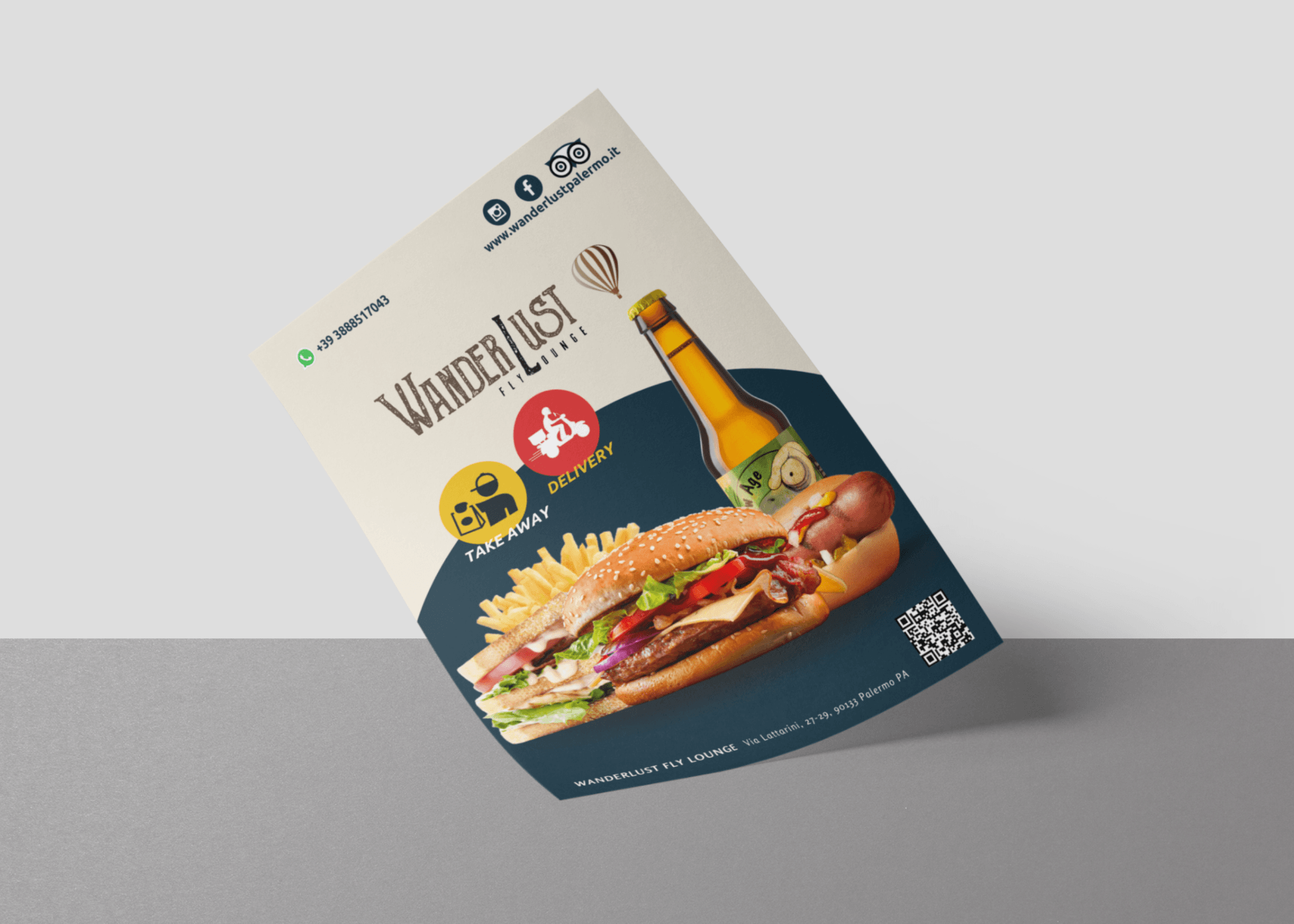 Collaborazione continua di grafiche pubblicitarie e Brand Identity per supportare il servizio di ristorazione e mantenere la clientela aggiornata quotidianamente.